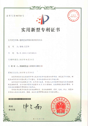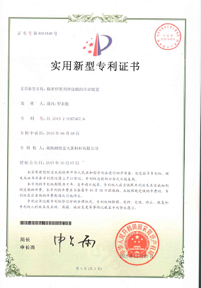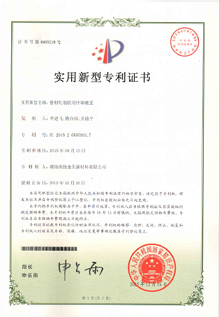 歷年來湘投金天新材獲得的專利證書有,《管材軋制機(jī)用冷卻裝置》《超薄壁鈦焊管在線切割用夾具》 《精密焊管用焊接輥的冷卻裝置》《異形管加工用內(nèi)芯頭》《異型管自動(dòng)清洗裝置》《管材軋制機(jī)用冷卻裝置》 《管件外表面干燥裝置》《無縫鈦焊管及生產(chǎn)方法》《換熱器用鈦管》《鈦焊管退火冷卻裝置》《鈦焊管生產(chǎn)線的焊接裝置》 《薄壁鈦焊管成型軋輥》《薄壁焊接盤管及其生產(chǎn)方法》...